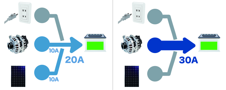 Battery Charger Selector 70Aは、このような充電電圧の干渉による充電量の減少を避ける為に開発された製品となります。