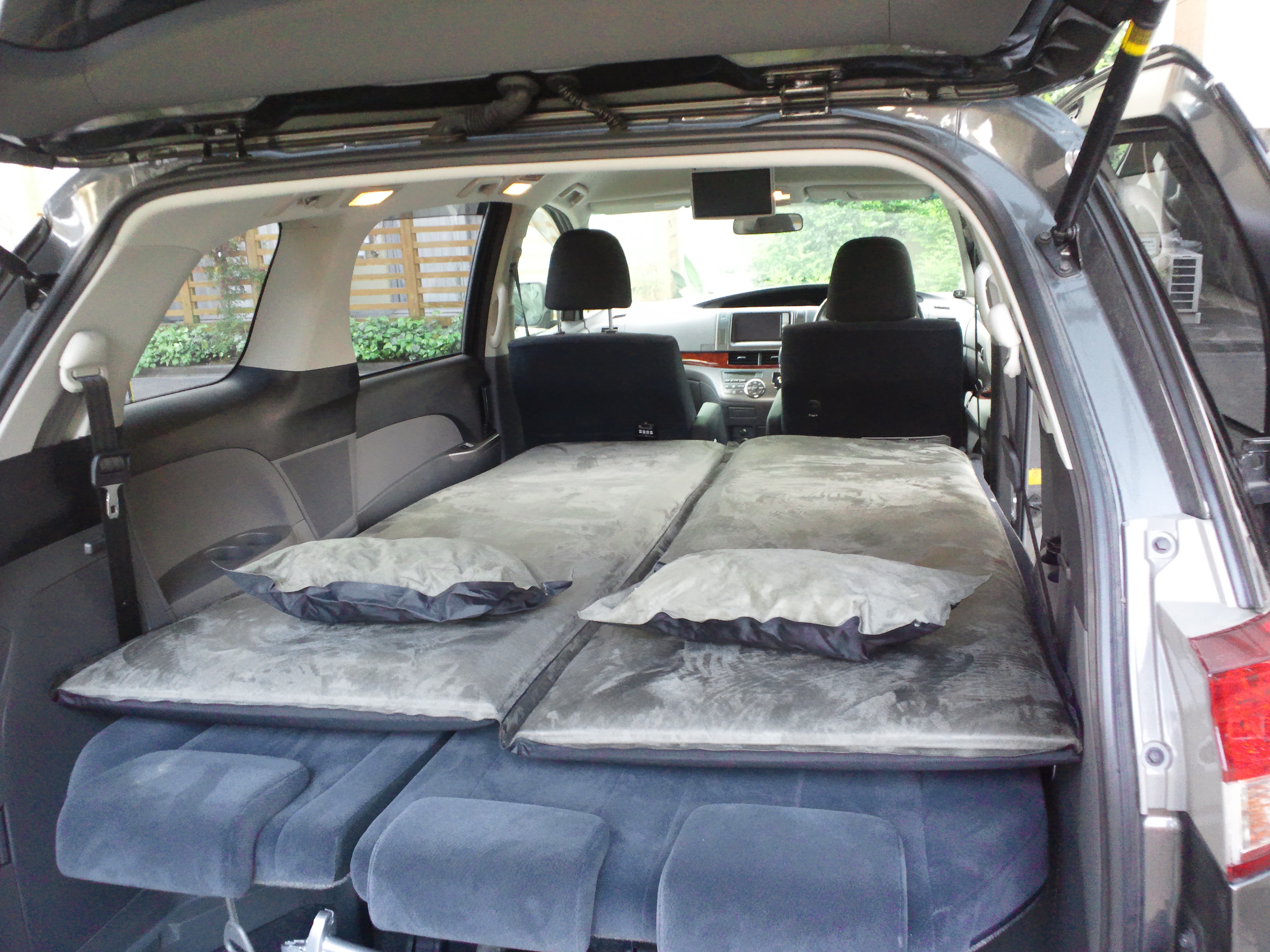 頂く前までは、布団用のマットレスと布団をひいて車中泊していました。