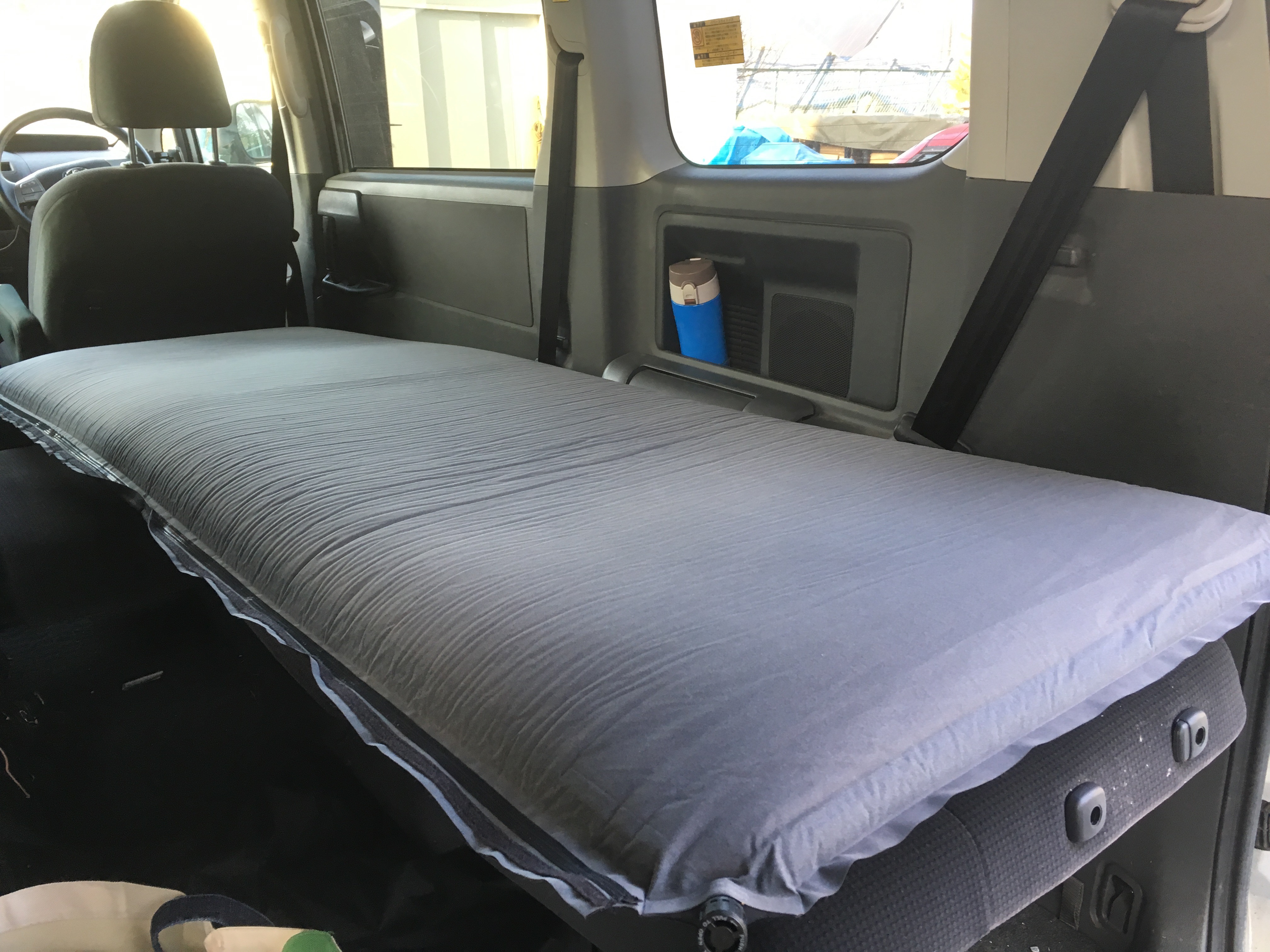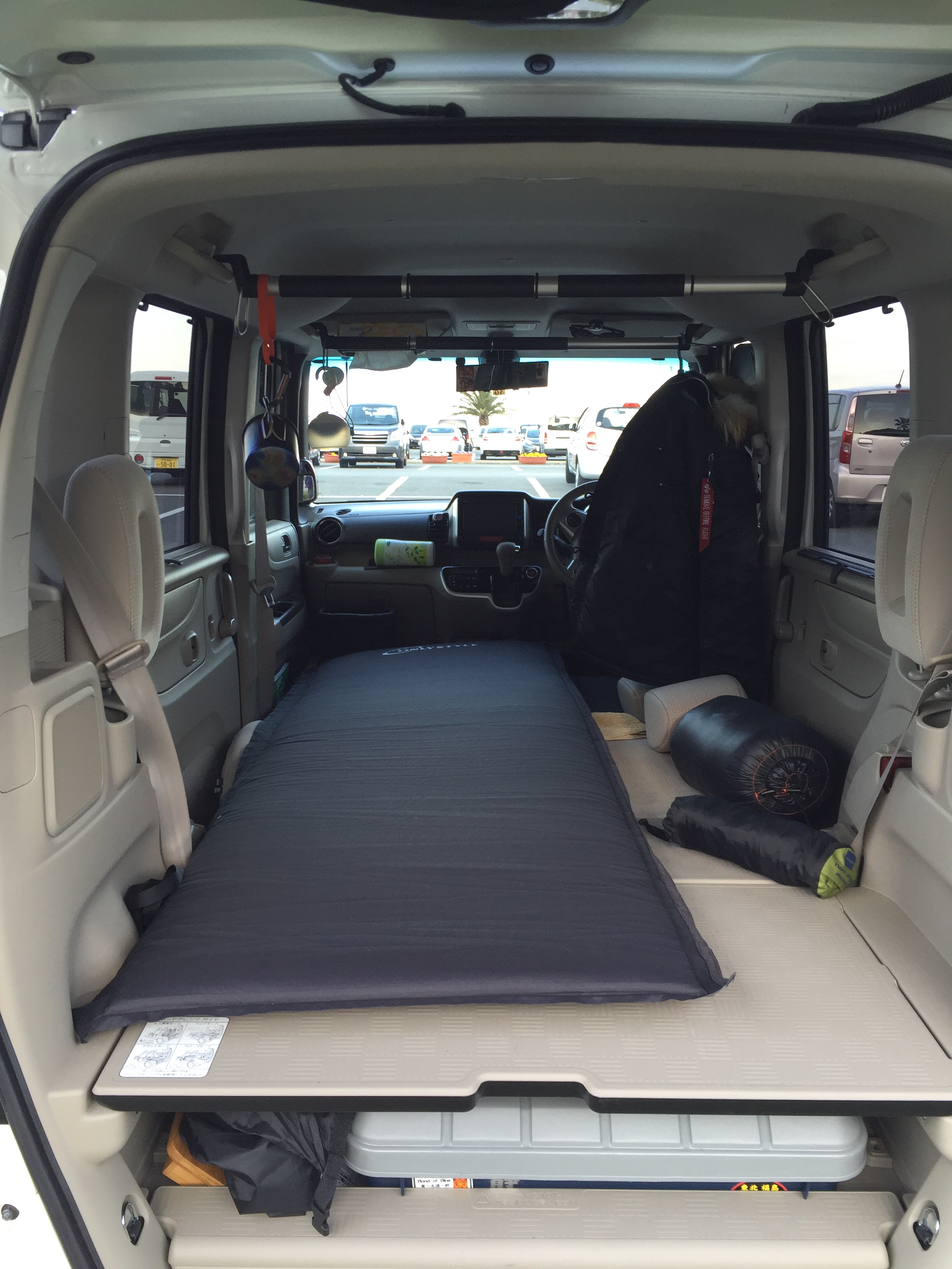 今までは、ただシートを倒し寝袋で寝ていましたので熟睡できず朝になると腰も痛くなってしまいます。