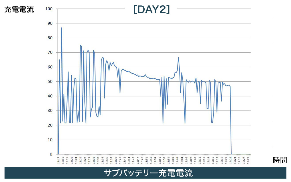 スタート直後は最大で70Aの充電電流を発生。